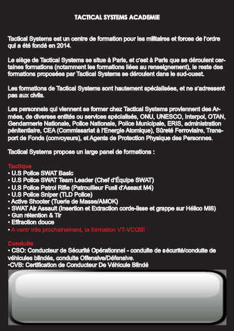 Tactical Systems est un centre de formation pour les militaires et forces de l’ordre